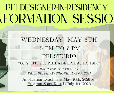 Upcoming Event PFI Designer-In-Residency Information Session In Person Session @ PFI Stuido May 6, 2026 | 5:00 PM 706 S 4th St Philadelphia, PA 19147 Register Today